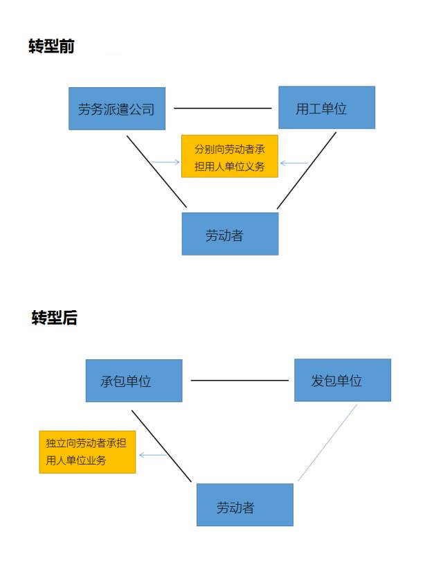 上面说到派遣转外包作为大部分企业的首选,以及转外包后的劳务关系变化。